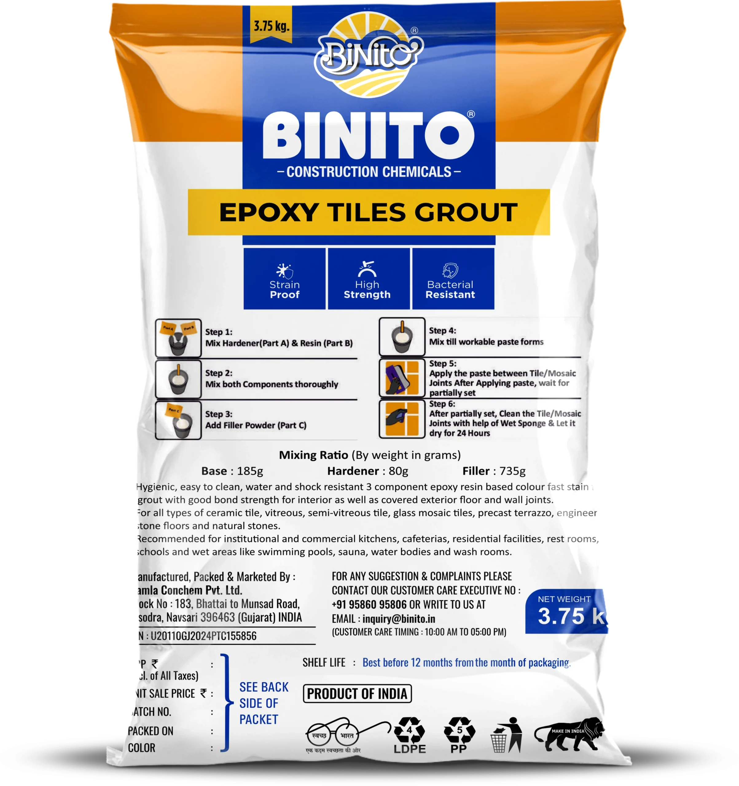 A complete range of adhesives (Type-1, Type-2, Type-3, Type-4 & Type-5) designed for diverse applications, including ceramic tiles, vitrified tiles, glass mosaics, artificial stone & natural stone.