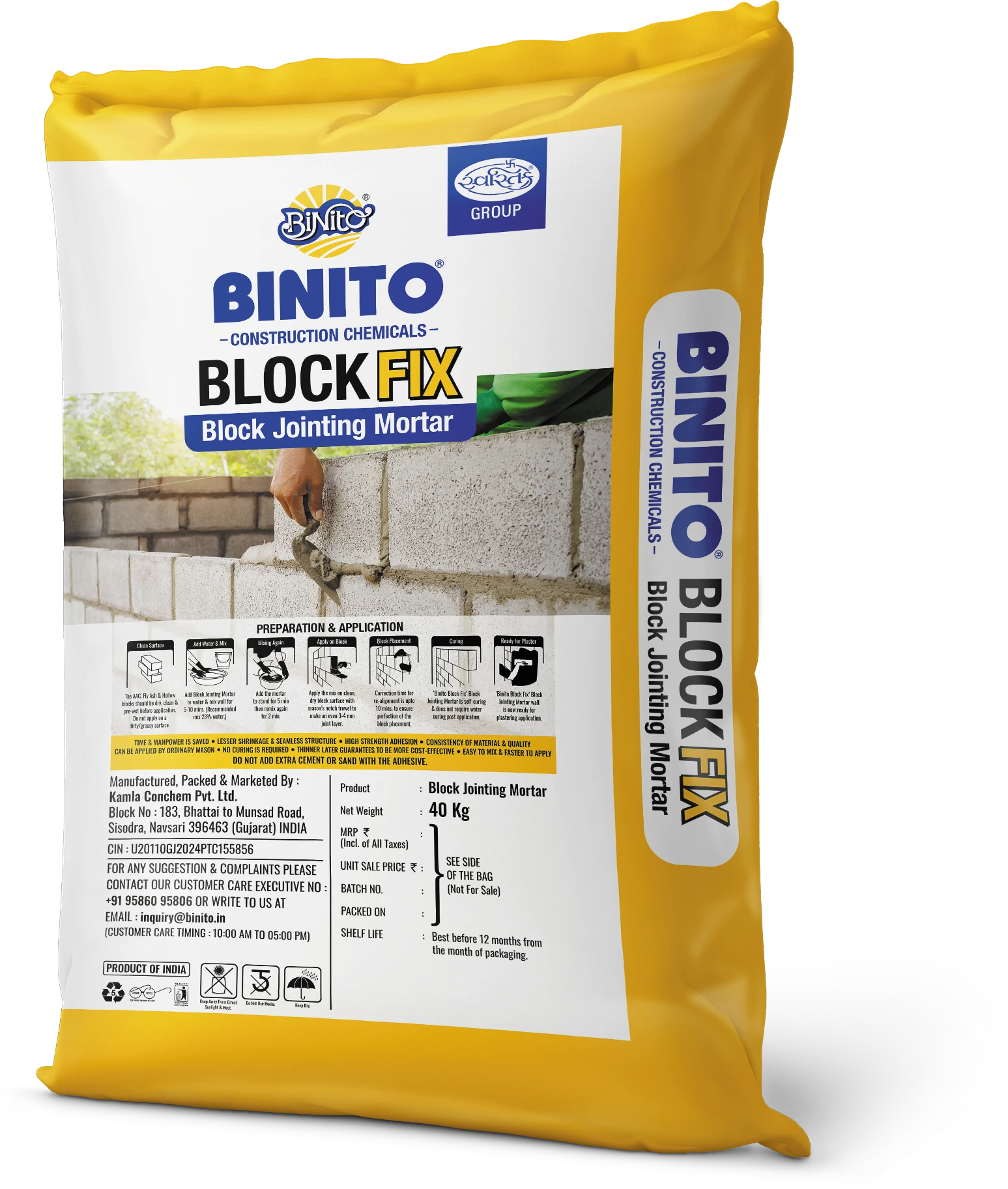 - Ideal for joining AAC blocks, concrete blocks and fly ash bricks in walls and partitions.