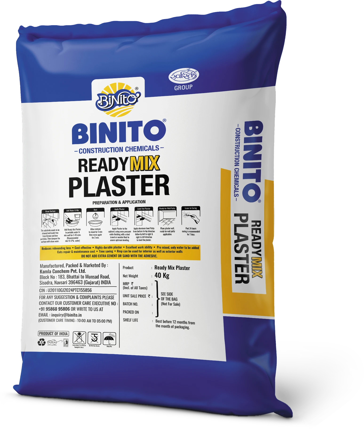 - Mix Binito Ready-Mix Plaster with clean water in the specified ratio until a smooth, lump-free paste is achieved.Â